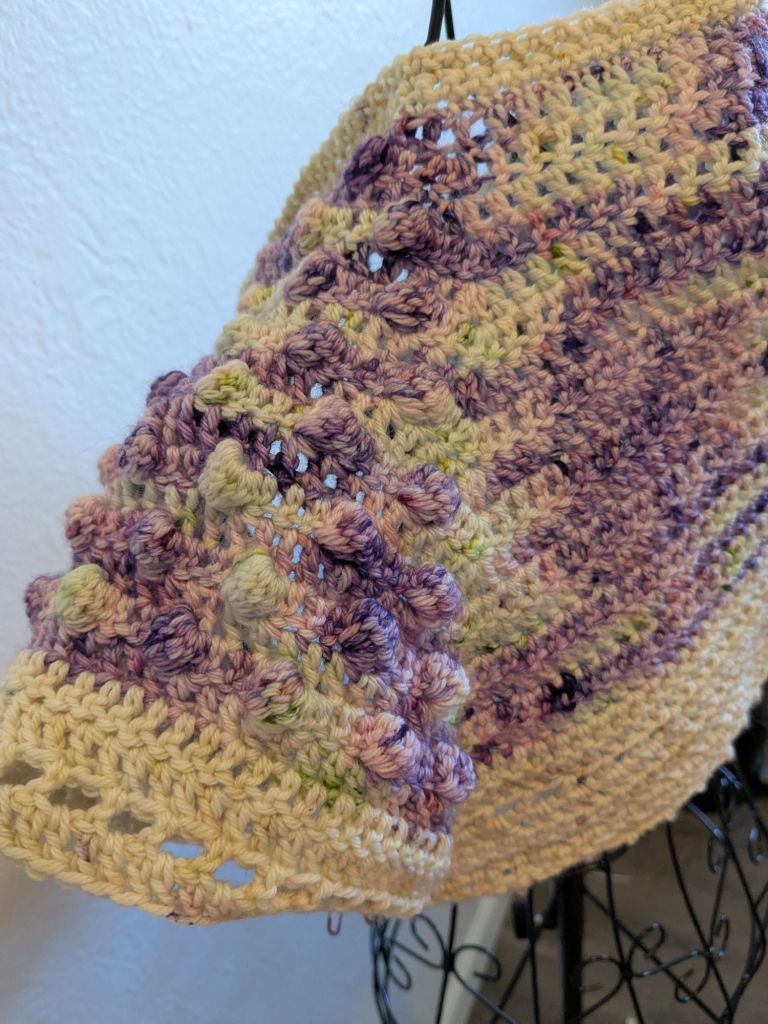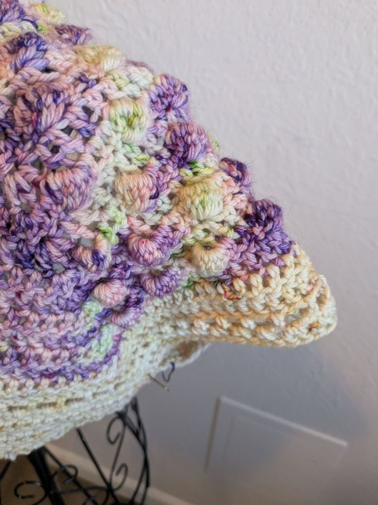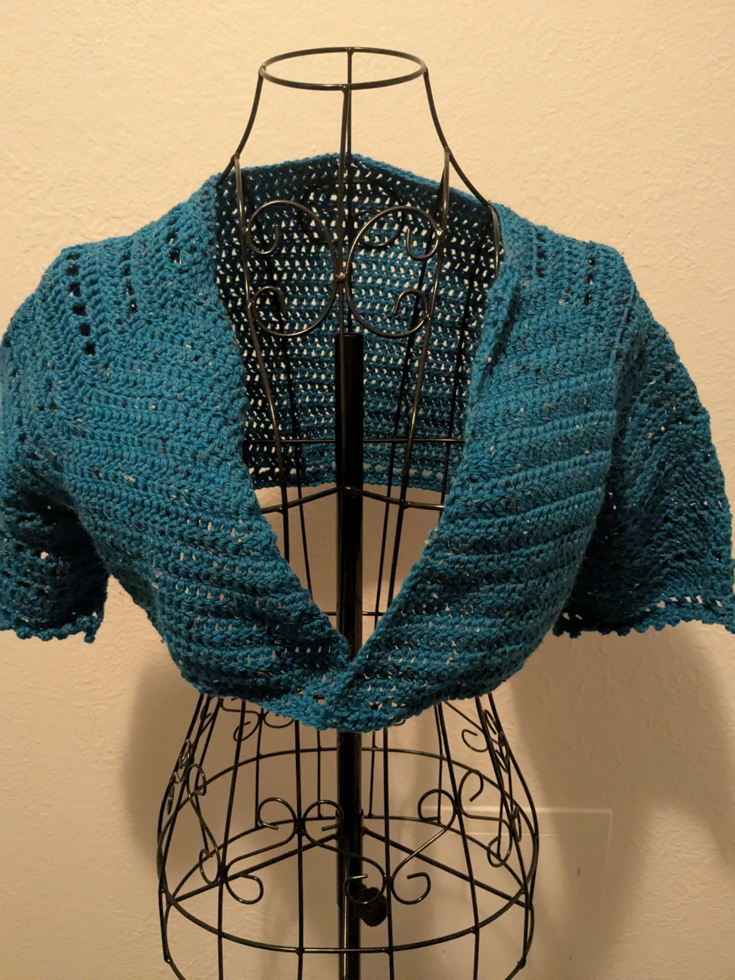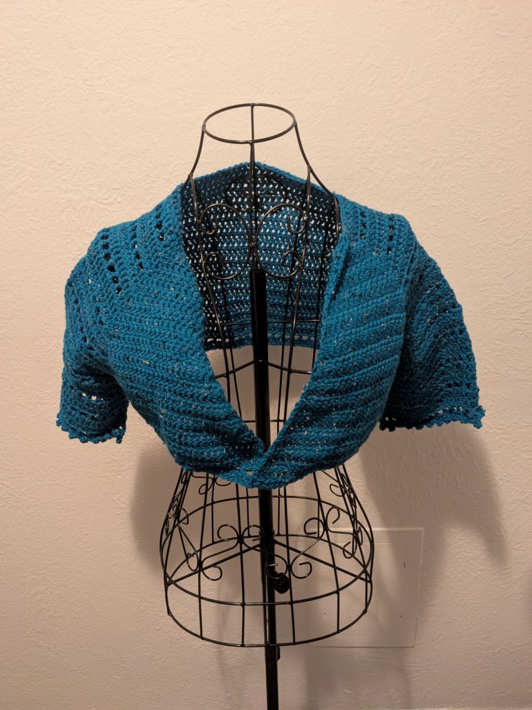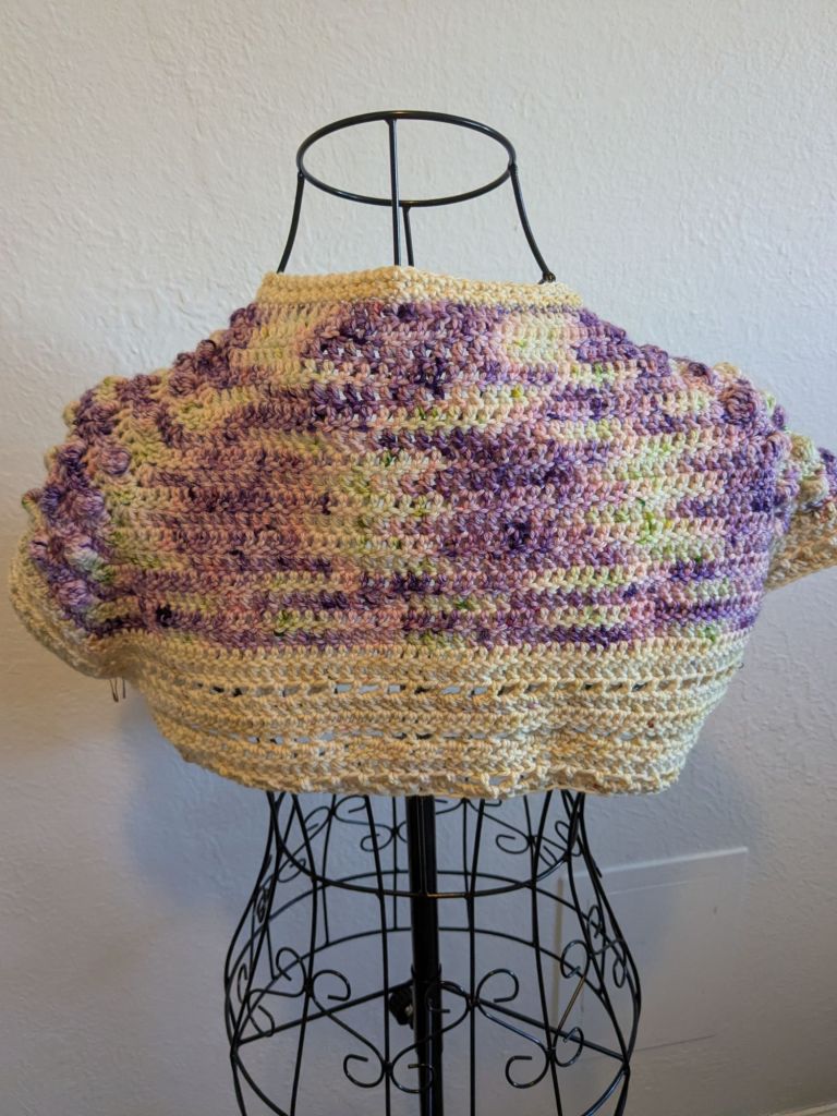 I added sleeves because I have half-sleeve tattoos on both arms and I needed a cover for work that would hide them. I decided to go with a more lacey look over bobbles because I find bobbles hard to do.