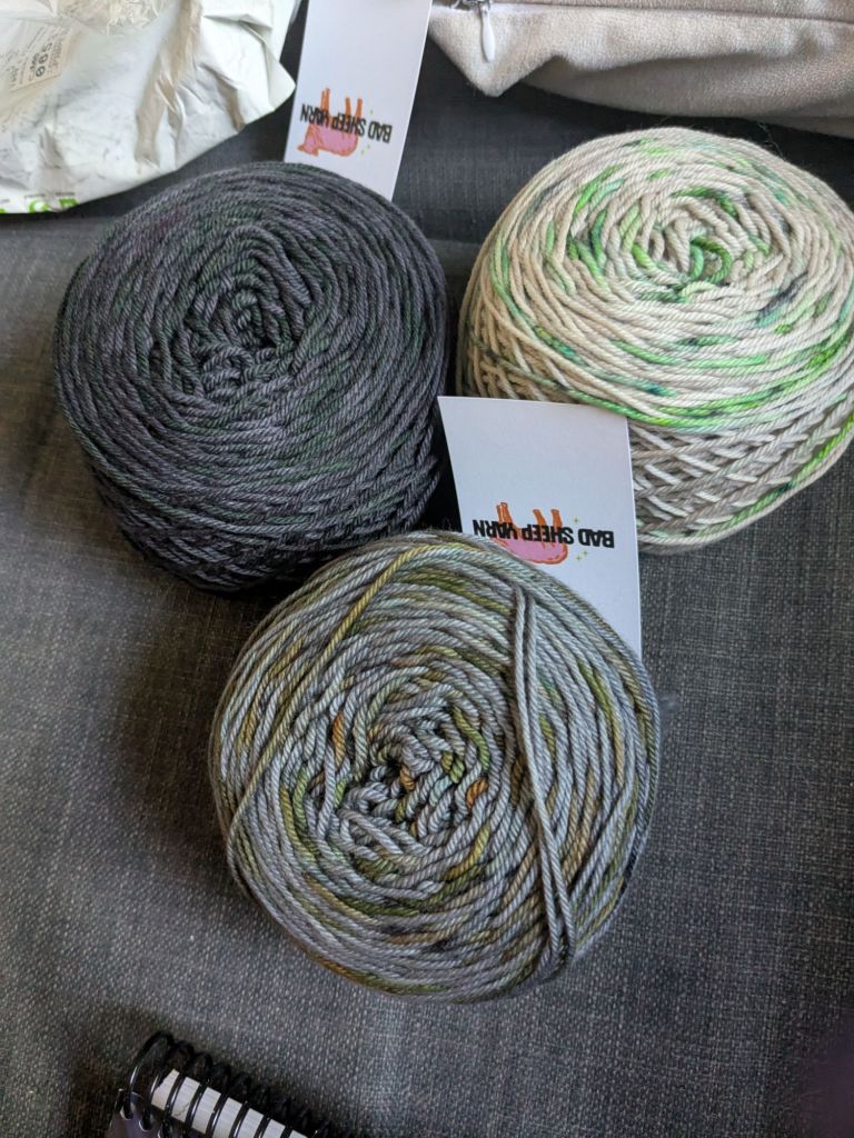 The next project I’m working on is using the Edgar Allen Poe set from Bad Sheep Yarn. I’m taking the basic concept of the bolero jacket which uses a no-sew raglan sleeve style and turning it into a shirt.