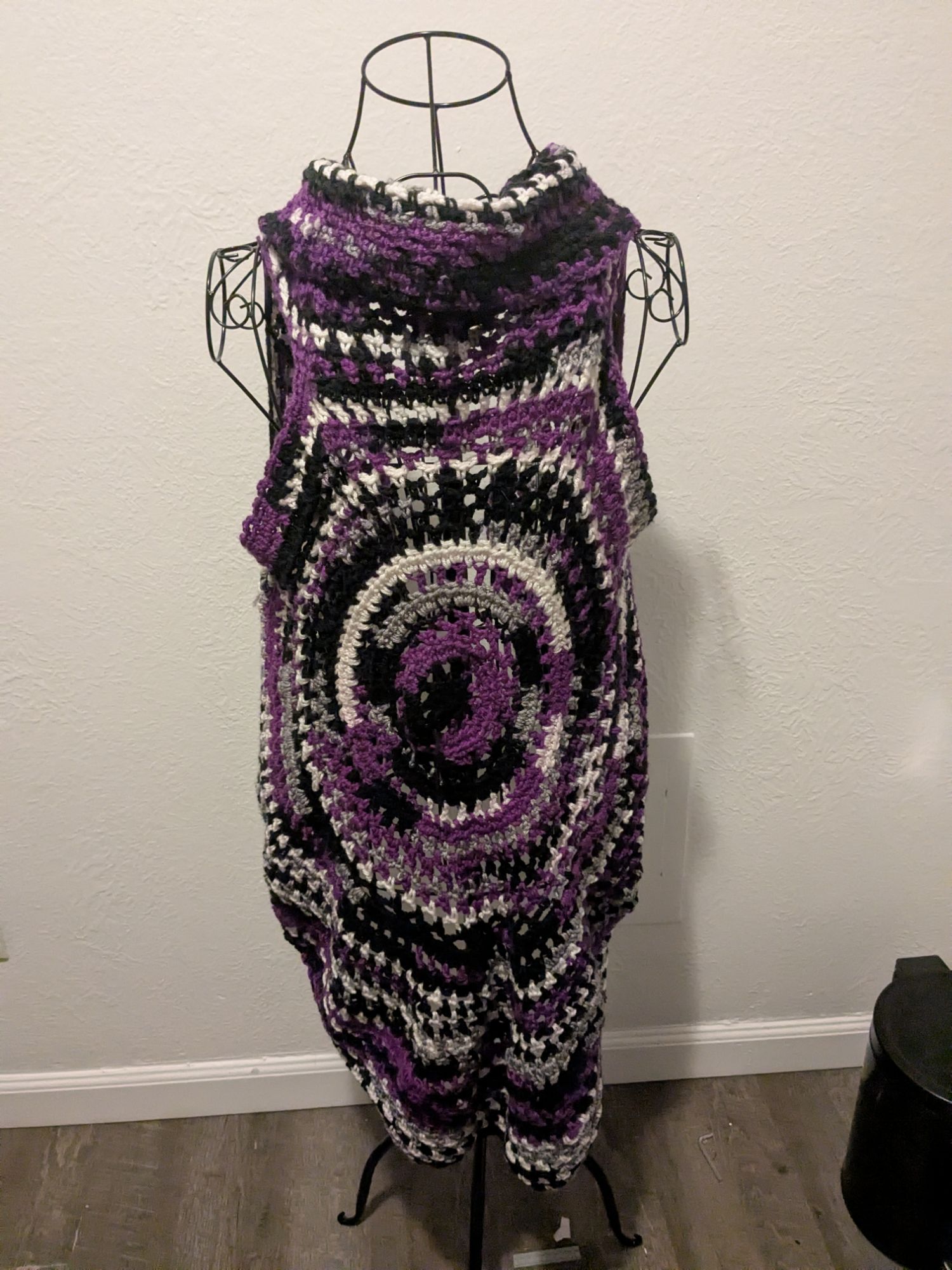 I have a goal of working on one pride project a day throughout June. If you’ve been looking at my finished projects, you may have noticed that my identity under the LGBTQIA+ umbrella is very important to me. I am nonbinary (“NB” or “enby”) and asexual (“ace”) so a lot of my personal items have that color scheme. Like this sleeveless vest I made: